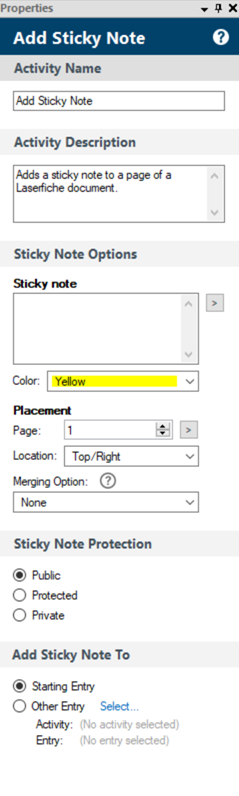 appears at the top of the pane. Select the button to view and configure those properties. - Configure the desired property boxes to specify the activity's behavior.