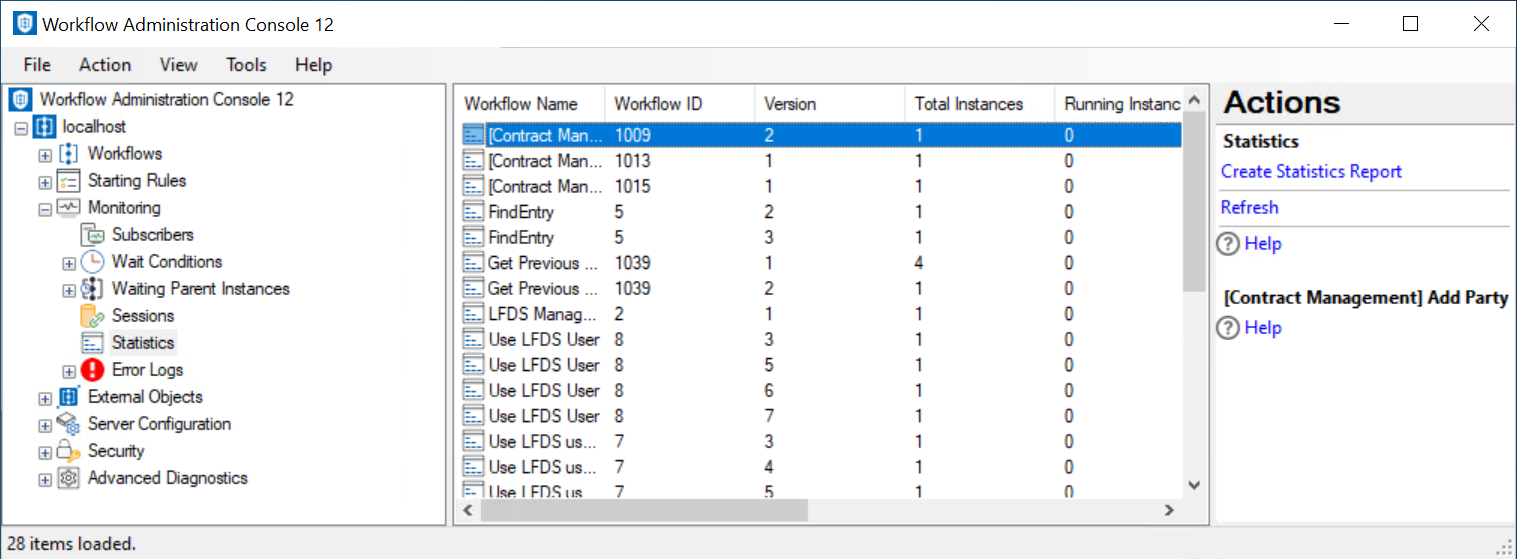 - Select Statistics. The node will list statistics for all the workflows on the Workflow Server.