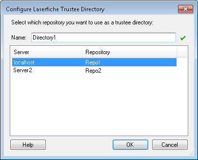- When finished, click OK. The new trustee directory will be displayed in the Trustee Directory Manager under the Laserfiche Directory tab.