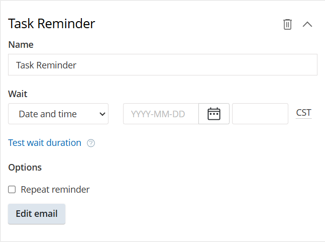 9. Click Edit email to create or edit the task reminder email to be sent.