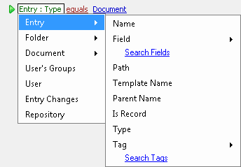 Condition Type Speed Entry Name Fast Entry Path Fast Parent Name Fast Entry Type Fast User Name Fast Entry Changes Fast Entry ID Fast Entry Server Fast Entry Repository Fast Field Conditions Medium Entry Parent ID Medium Volume Medium Template Conditions Medium Tag Conditions Medium Document Page Count Conditions Medium Template Name Medium Is Record Medium Folder Content Conditions Slow Parent Content Slow