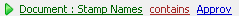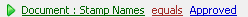 Example: The "Parking Permit 123" document has the following stamps on it: Approved, Confidential, and City Reviewed. The workflow should continue if the document has the Approved stamp on it. This condition: