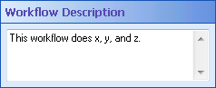 You can type a description of your workflow definition in this property box. Providing a description for a workflow helps you remember what the workflow does.