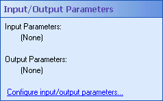 - In the workflow's Properties Pane, under Input/Output Parameters, select Configure input/output parameters.