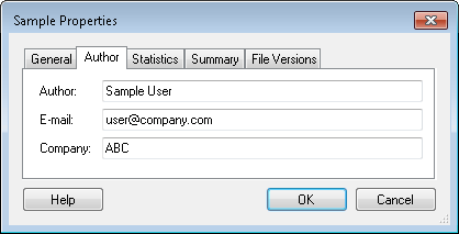 - Author: This tab displays the name of the user who created the workflow, the user's e-mail address, and the company's name. You can change this information in this tab.