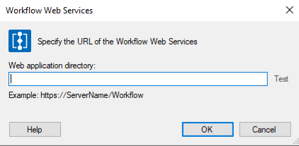 Workflow Web Service dialog box will contain the location of the machine the Workflow Web Service is installed on. Click OK to use this information as the Web application directory.