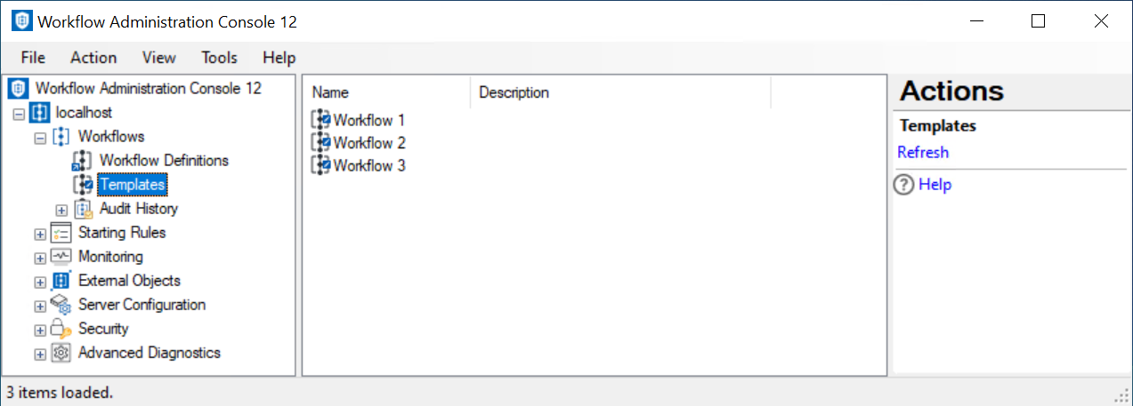 Tip: You can refresh this list so that it reflects recent changes by clicking the Refresh link below Templates in the Actions Pane. Alternatively, right-click the Templates node and select Refresh or press F5 on your keyboard.
