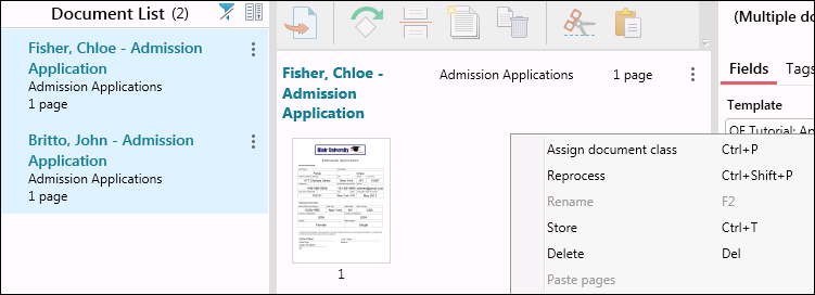 - Use CTRL or SHIFT to select multiple documents in the Document List Pane. Right-click on one of the selected documents and click Store.
