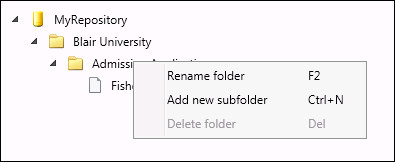 - Right-click a folder to rename it, create a subfolder inside of it, or delete it (if it's empty). You cannot delete a folder that contains another folder or document. If an entry is moved from a folder, leaving the folder empty, the empty folder will automatically be deleted when another document is selected from the Document List or Pages View.