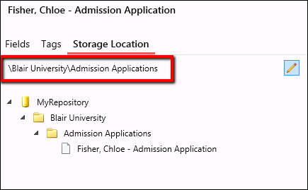 Displayed at the top under Storage Location is the document's repository folder path. If you have multiple documents selected that are stored in different locations, this folder path will display the text (Multiple locations)instead of the document path.