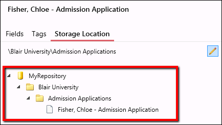 Once documents have been scanned and modified in Quick Fields Scanning, the next step is to store them to Laserfiche. When a document is selected in the Document List Pane or in Pages View, its repository storage location will be displayed in the Metadata Pane on the right under Storage Location.