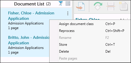 - Right-click on a document page and select Store.