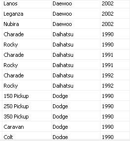 In some cases, you might want to link more than two pieces of information in a dynamic field. For instance, you might create a set of dynamic fields to track car manufacturers, models, and years, such that if you selected, say, Dodge as the manufacturer, only Dodge models would appear in the models list; once you'd selected Dodge and Caravan, you would then be able to select only years relevant to Dodge Caravan automobiles. You could do so with a list like the one below.