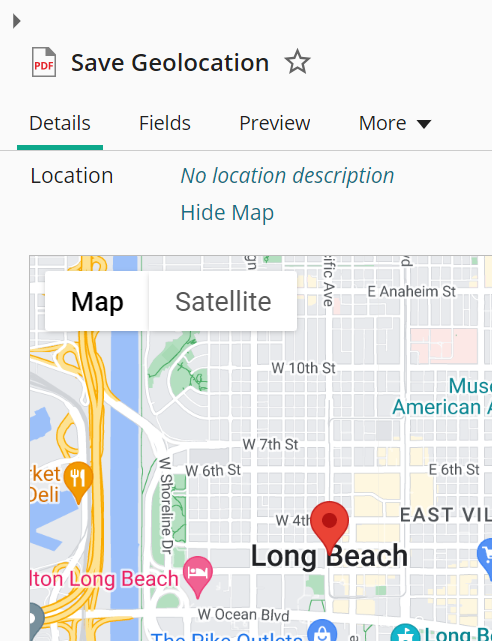 - If a single point location is used, the values can be checked in the details pane of the saved document by clicking Show Map.