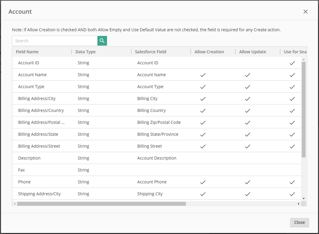 The View Details link displays a chart that shows how fields can be used by the application Actions. These details show which fields can be populated when creating or updating a record, or are read-only.