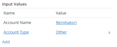 - Under Input Values, select the desired values you want to input in your integrated system. Use Workflow tokens to insert dynamic values based on the running workflow. For creation and update actions, this is where you specify what you want to change in the integrated system. In addition to default values required by the system, you can click Add to insert additional information.