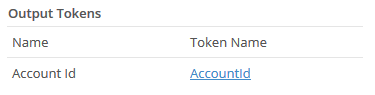 - Under Output Tokens, take note of the output tokens created upon completion of the Run Application Action activity. The value of these tokens can be used later in your workflow. Rename the token names as desired. For example, after creating an new account, the system will return the Account Id of the newly created account.